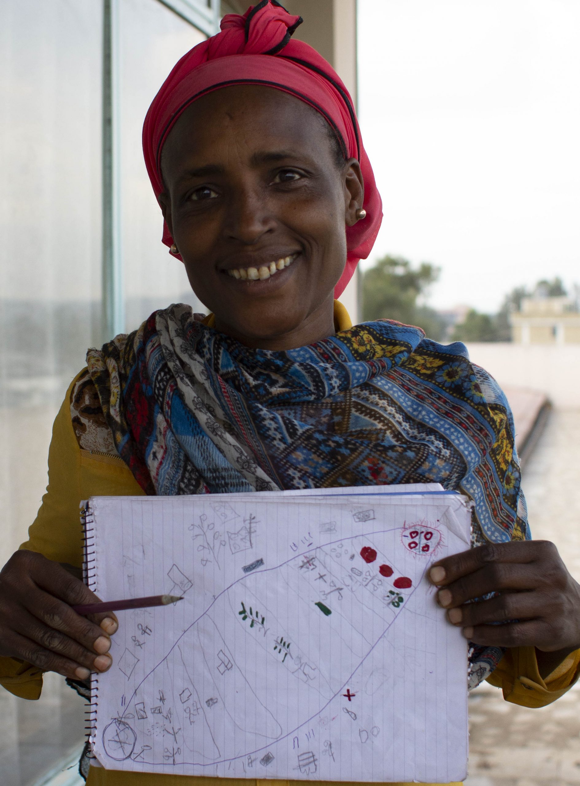 Etenesh shows her Livelihood Management Calendar. Timret champion November 2016